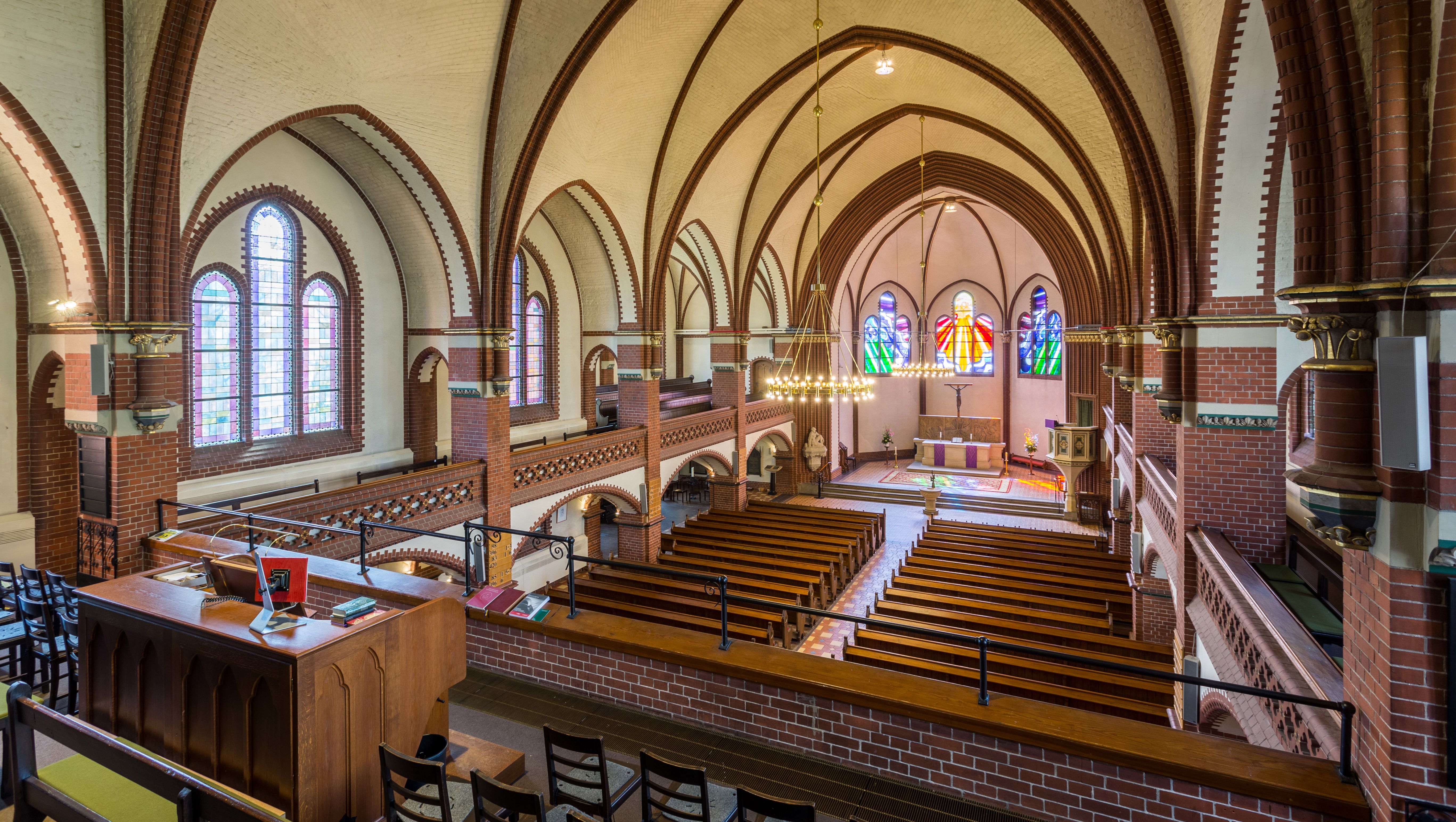 Besonderheiten: Hervorrangende Akustik durch Holzboden, romantische Orgel von 1897 (zweitgrößte Kirchenorgel Berlins)